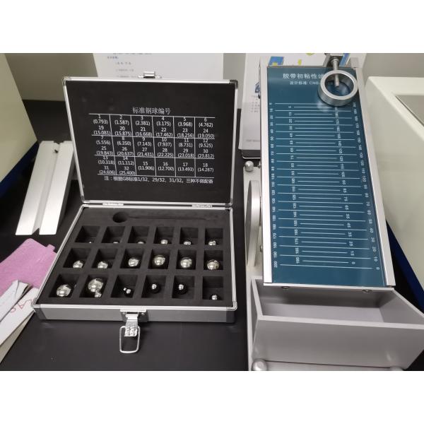 It is applicable in tack tests of pressure sensitive adhesive tapes, adhesives, adhesive products.Turn the adhesive surface of specimen upward and place it onto the test plate (inclining 30°).Release freely the steel balls from large one to small one on the top. Record the number of steel ball which can stay on the tape at least 5seconds.
